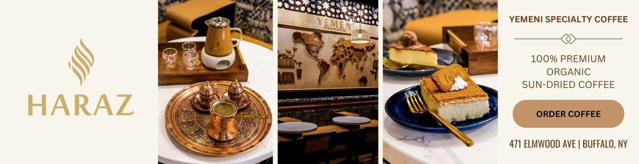 Haraz Coffee House, the newest addition to Elmwood Village specializes in authentic Yemeni coffee, made from organic sun-dried beans and traditional brewing methods that make each cup insanely smooth, rich, and unlike anything you’ve ever tasted. Inside, it’s giving cozy-cool with a cultural twist—think traditional Yemeni art, a beautiful mural, and a vibe that makes you want to stay awhile. On the menu? Pistachio lattes, Adeni tea, saffron lattes, cortados, and a lineup of organic baked goods like milk cake and scones that pair way too well with your drink. Ready to see what all the rave is about? Check out their menu below! |