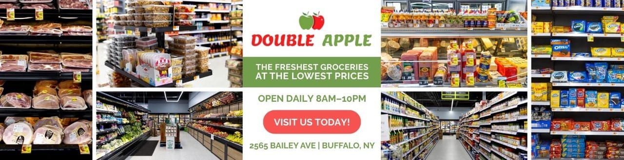 If you love a good meat raffle, we found just the grocery store where you can get good meat, and lots of it for cheap. If you’re feeding a big Buffalo family, or just trying not to blow your entire paycheck at the grocery store — Double Apple Foods needs to be on your radar. This East Side spot is low-key famous for having some of the cheapest butcher prices in Buffalo. We’re talking ground beef for $3.99/lb and T-bone steaks that are $3–$4 cheaper per pound than other stores. But the real MVP move? Their specialty meat packs. Mix and match 6–10 items like chicken wings, pizza logs, pork chops, roasts, nuggets, fries, and more — perfect for meal prepping and freezer stocking. Check out their weekly deal drops every Sunday on their website to get first dibs on all the good stuff! |
